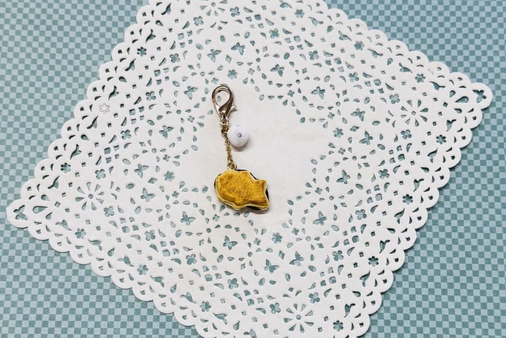 ふたつめは、あんこがたっぷりはみ出た、美味しそうなたい焼きと、豆大福をモチーフにしたチャームです。